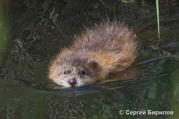При плавании ондатры на поверхность выступают только верх головы (глаза под водой открыты) и задняя часть спины, хвост дугообразно изогнут кверху. Гребет она задними конечностями, передние прижаты к груди. Максимальная продолжительность пребывания под водой - 12 мин.