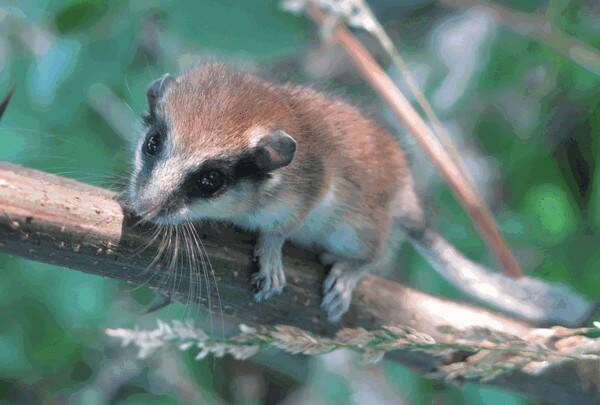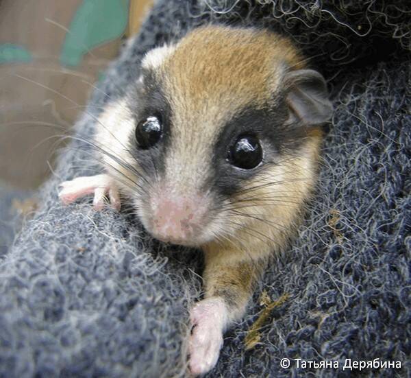 Мех мягкий, пушистый, на спине серовато-бурый с рыжеватым оттенком, на брюшке, груди и горле - желтовато-белый. Хвост сверху серый, снизу белесый. По бокам головы, от носа до ушей, проходит черная полоса, которая охватывает также область глаз («маска»). На хвосте до 10-12 колец, по которым проходит разрыв кожи; после автотомии хвоста концевые волосы удлиняются в густую пышную кисточку.