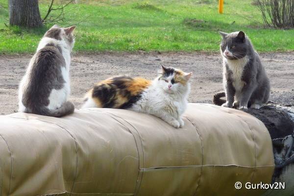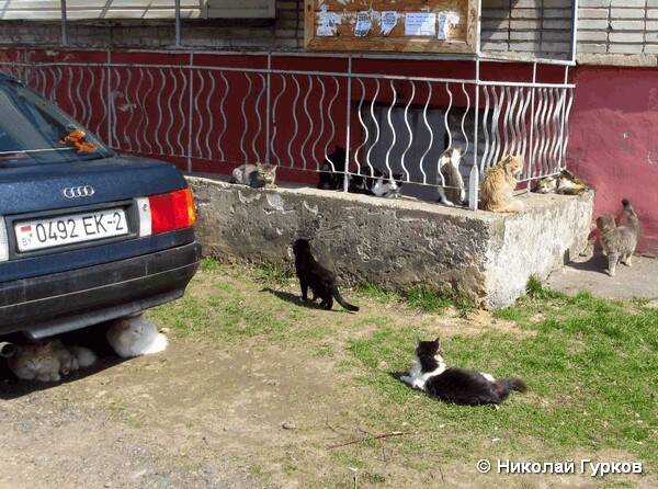 Gurkov2N, Витебский р-н. Домашняя кошка, окруженная бездомными котами