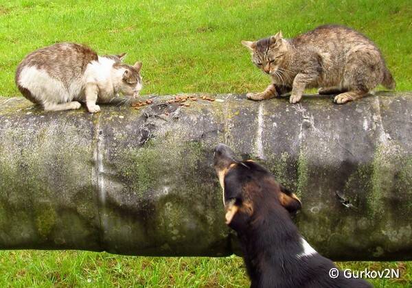 Gurkov2N, Витебский р-н. Кот отгоняет собаку от кошки с котенком