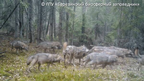 В Беловежской пуще за период с октября 2013 до декабря 2017 фотоловушами число регистраций волка составило 1362. По количеству значительно доминируют регистрации одиночных волков и двоек. Группы из 3-4 особей достаточно редки, а регистрации 5 и более волков – единичны. Среднее количество особей в группе составило 1,42. Специфика работы фотоловушек позволяет говорить о возможном занижении количества волков в группах за счет пропуска волков в движущихся стаях.
