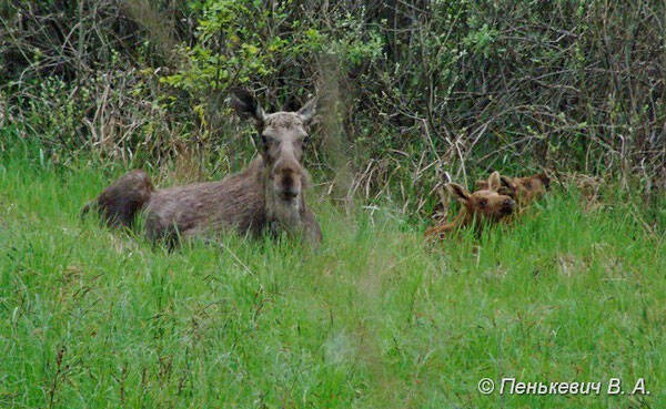 Отдельно можно выделить случаи контакта с новорожденным лосенком, который еще плохо самостоятельно передвигается и просто лежит на месте. Даже если поблизости не видно его матери, лосенок все равно находится под ее присмотром. Это единственный случай, когда лось самостоятельно может проявить агрессию по отношению к человеку.