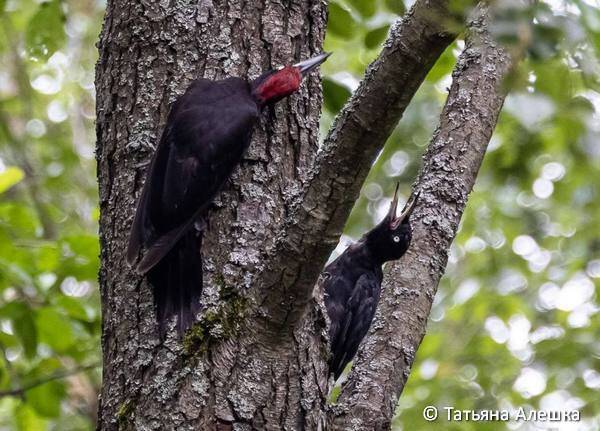 Высота расположения дупла над землей не ниже 3 м, обычно 6-8 м, нередко выше - до 15 м. В Поозерье высота дупла варьирует от 4 до 17 м, наиболее часто - 8-10 м. На гнездовом участке черного дятла обычно имеется несколько дупел (до 8), из них два или три по очереди используются птицами для устройства гнезда. Остальные служат птицам для ночевок в течение всего года. Каждый год пара выдалбливает новое дупло, но изредка в течение нескольких лет (2-3 года) использует старое. Леток дупла имеет характерную эллипсоидную, иногда почти прямоугольную форму. Яйца откладываются прямо на дно дупла, устланное лишь небольшим количеством мелких щепок. Размеры летка 8,5-9,5 х 11-12 см, глубина дупла 35-60 см, ширина 15-20 см.