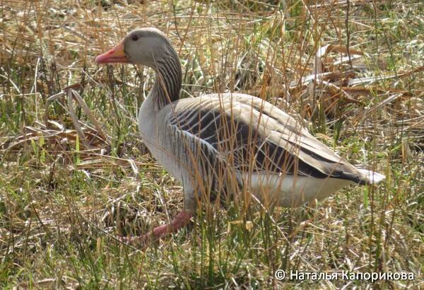 Гоготание серого гуся громкое, гнусаво-дребезжащее, неторопливое, без визгливых интонаций.