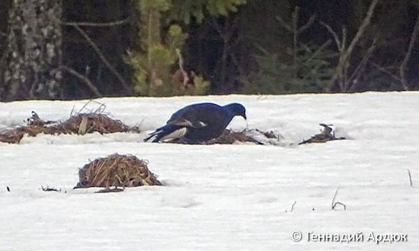 В многоснежные зимы тетерева ночуют в снегу, для чего проделывают ходы. При рыхлом снежном покрове тетерева закапываются очень быстро. Вылетая из снега для кормежки, оставляют заметные лунки, которые располагаются на расстоянии 1-3 м одна от другой.