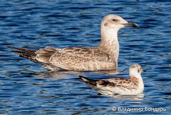 Осенью и зимой голова белая, обычно с некоторыми серыми продольными пестринами на зашейке, в отличие от взрослой серебристой чайки, у которой более распространена серо-коричневая окраска. Однако у некоторых серебристых чаек голова белеет рано, уже зимой.