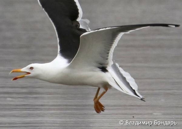 У птиц западно-европейского подвида L. f. graellsii линька первостепенных маховых перьев продолжается в течение всей осени. Зимой у птиц номинативного подвида голова в основном белая с немногими серыми пестринами. У представителей подвидов L. f. graellsii и L. f. intermedius продольные пестрины зимой, как правило, более обильны. Клюв большой, сильный, ярко-желтого цвета с красным расплывчатым пятном на выступе подклювья. Ноги весною и летом лимонно-желтые. Радужина светло-желтая. Ободок век красный или карминный.