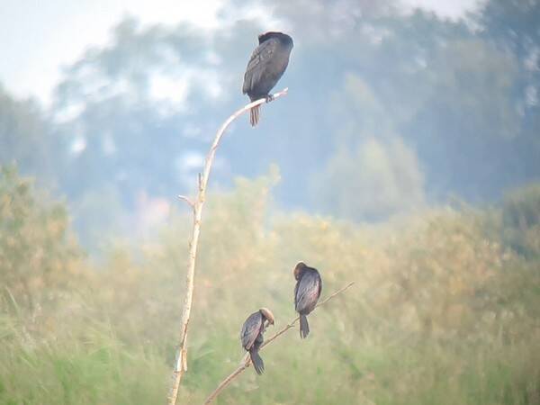 Наталья Капорикова, р/х "Днепробугский", Дрогичинский р-н, Брестская обл. Малый баклан, догоняющий стаю больших бакланов.