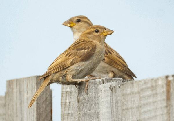 От полевого самец домового воробья отличается серым верхом головы, отсутствием черного пятна на щеке, наличием черного цвета не только на горле, но и на верхней части груди.